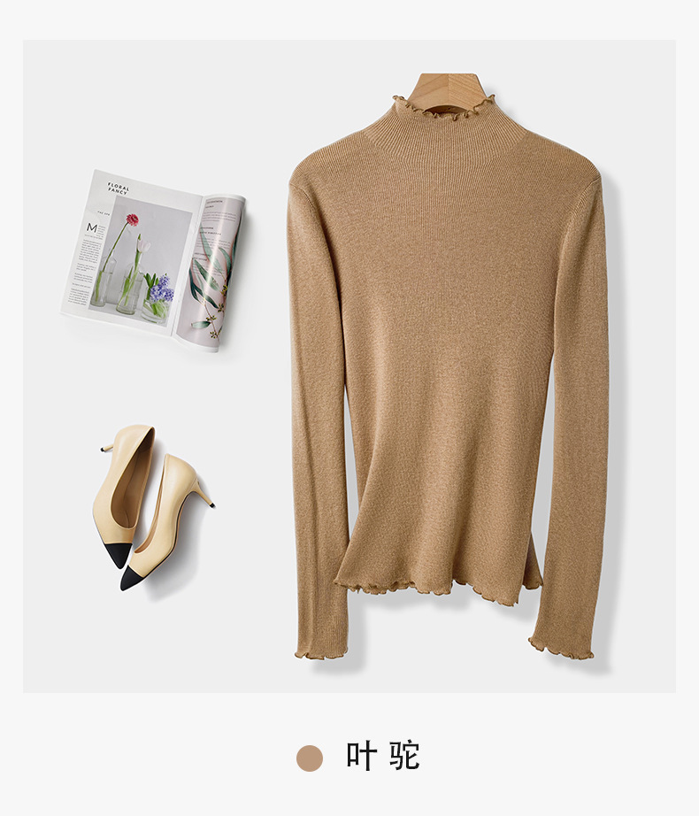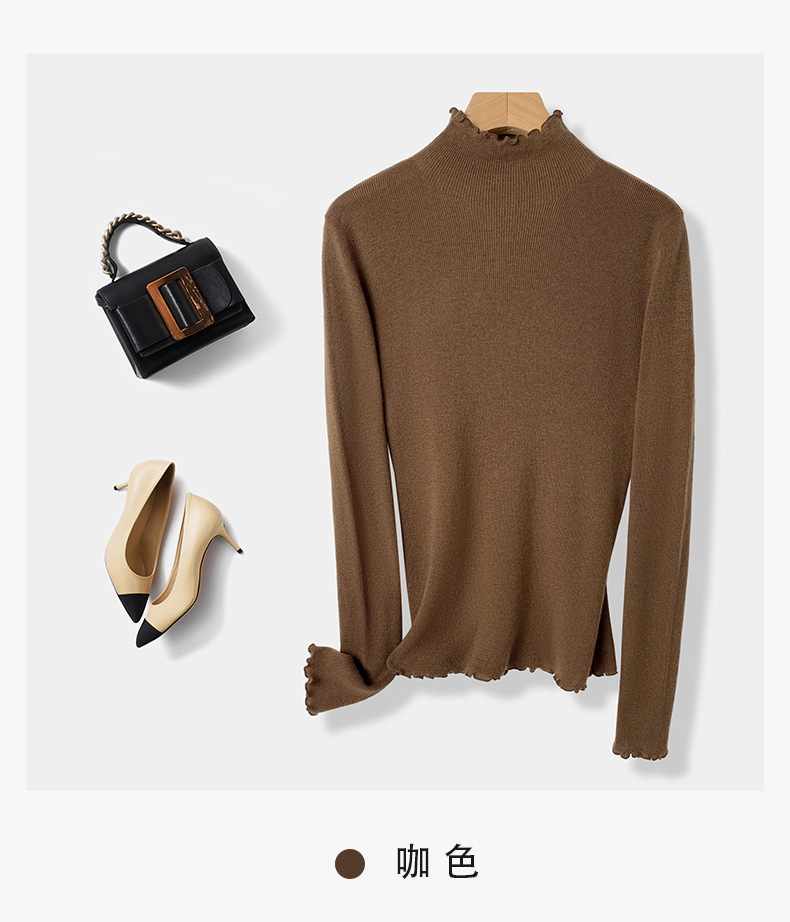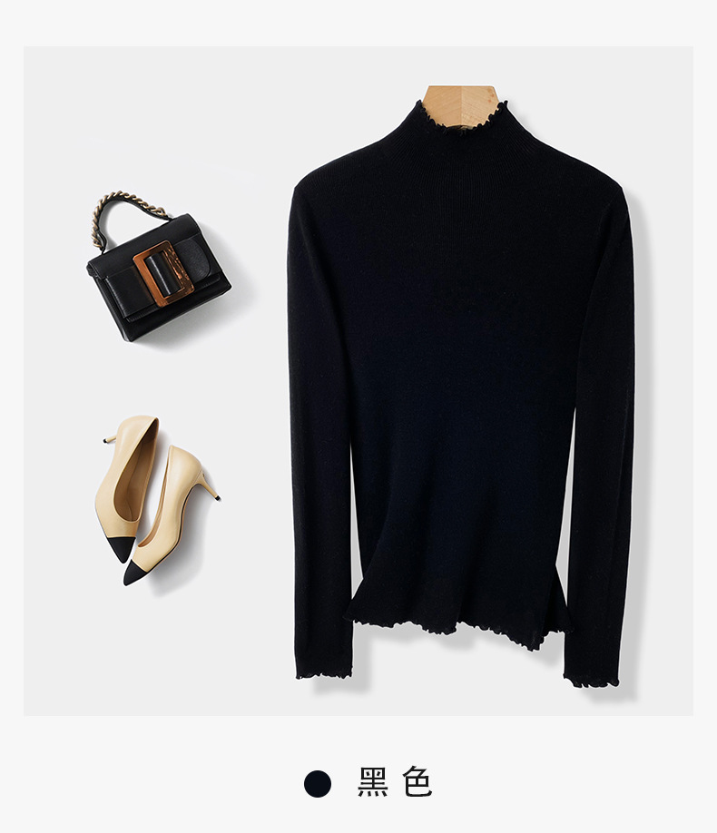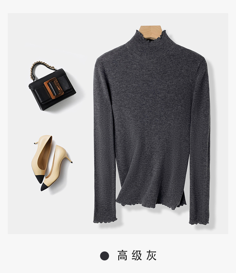 High-End Lace Collar 100% Wool Sweater Base Shirt for Women Long Sleeve Inner Wear Stylish Fine-Spun Superfine Merino Wool Sweater